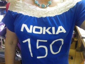 PerusT-paita,  pieni pyöreä pääntien ahdisti, joten leikkaisin hartiat auki ja leveä pitsi tilalle. kyllä sitä muutaman kesän piti.
