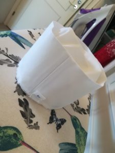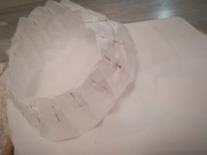 Rutkasti tukikankaan silitystä ja prässäämistä, mittaamista ja laskostamista.