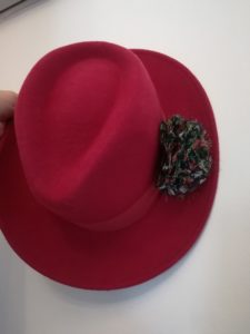 yksiväriseen hattuun näyttävyyttä ja näkyvyyttä